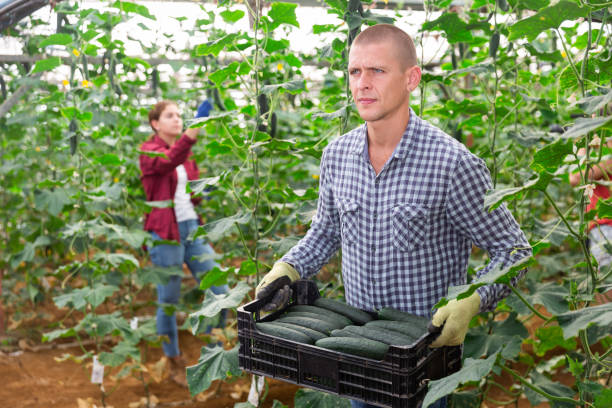 کشاورز در حال حمل جعبه خیار - فروش‌یاب، خرید و فروش عمده، آگهی تجاری